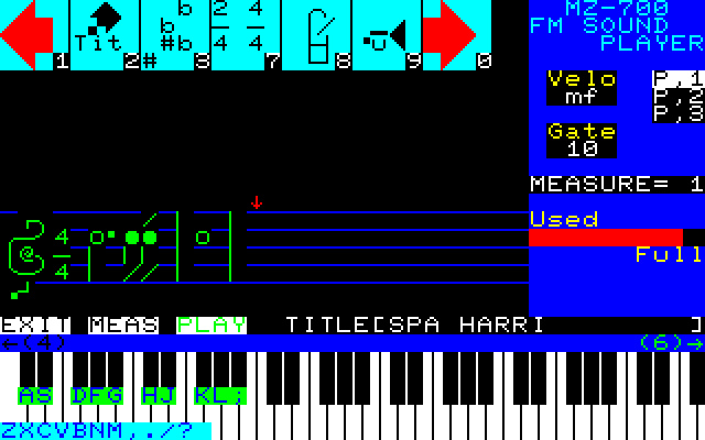 X1 のVIPなるソフトをモチーフに、700用FM音源制御ソフトを作ってみたという妄想です(笑)。楽譜打ちにくそう・・・。。 |