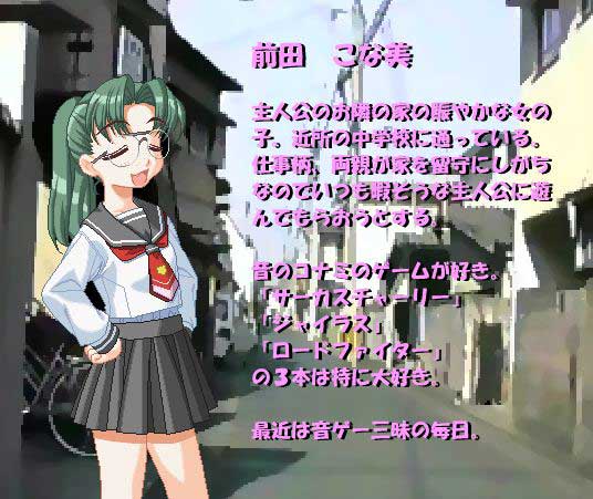 地方の大学に通う、ごくごく普通の古ゲー好き。なむ子、高田とは幼稚園の頃からの幼なじみ。じゃれ子とは中学時代からの仲間で、4人でいつも行動を共にしてきた。結局勢いで4人とも同じ大学に入ってしまったのであるが、さすがに学部は違う模様。お隣に住むこな美にはお兄ちゃんと慕われ(?)、メガドラ部では面倒見の良い副部長に可愛がられ(?)るなど女性運は割と強いようだが、鬼神のような部長と出会ってしまったので今後の運命は波乱模様。