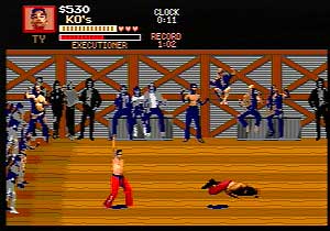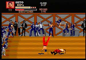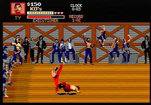 【4】 ダウンした敵にB連打でひたすらカカト落とし! 何発カカトが入るかはランダムっぽいです。 |